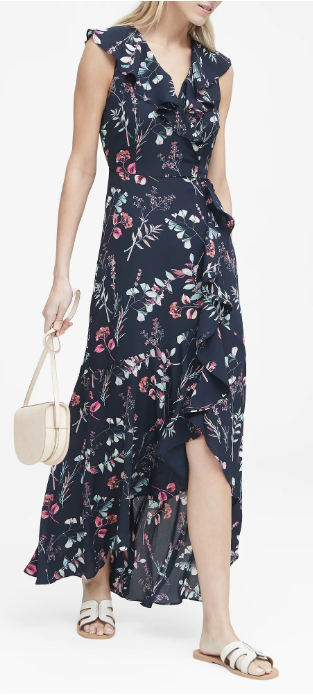 BANANA REPUBLIC Floral Ruffle-Wrap Maxi Dress – $159 This dress is floral, feminine, and flowing. Available in other colors.