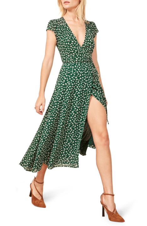 REFORMATION Carina Midi Wrap Dress – $218 *Helpful tip: dry clean only! Available in other colors/prints.